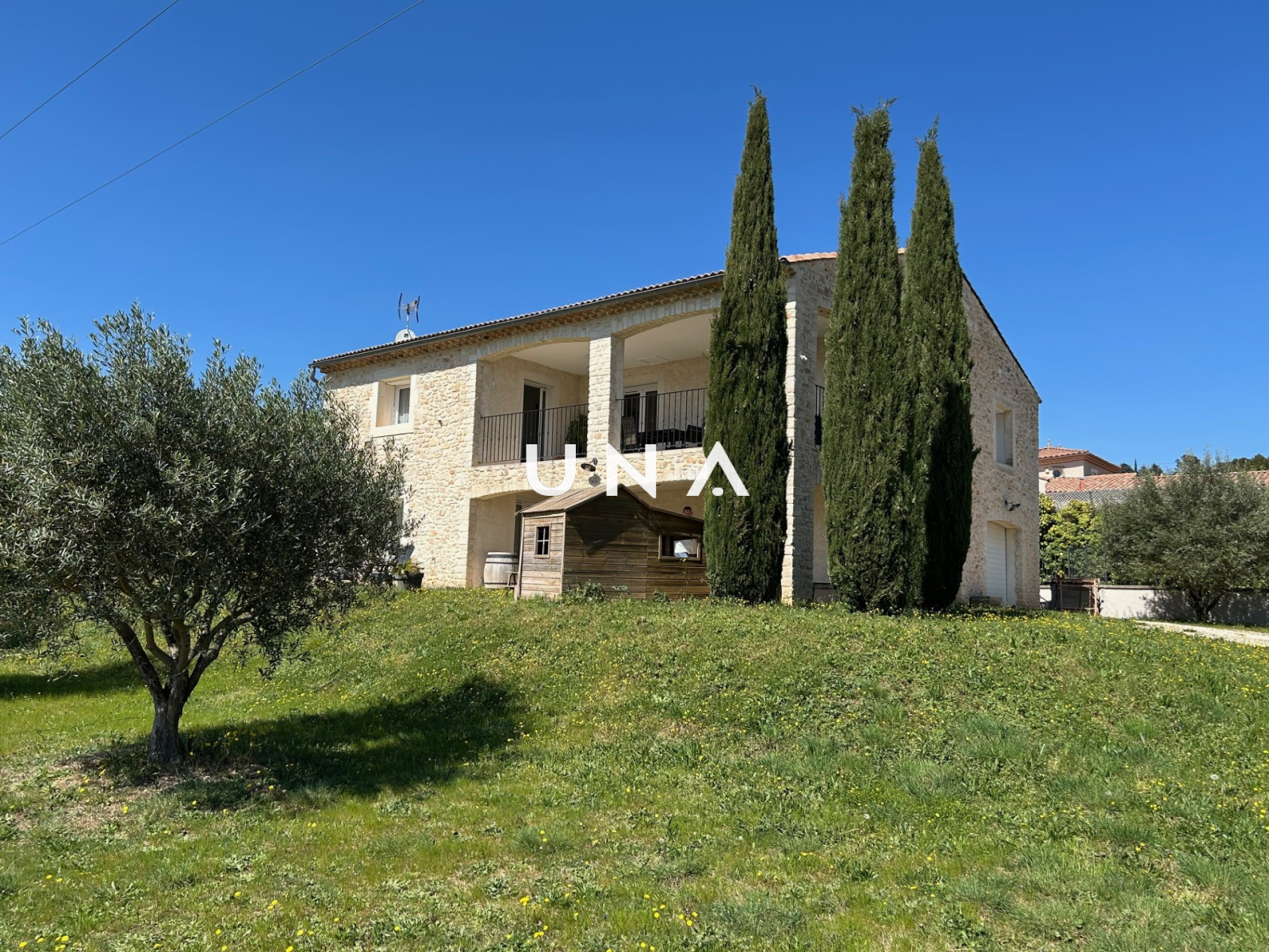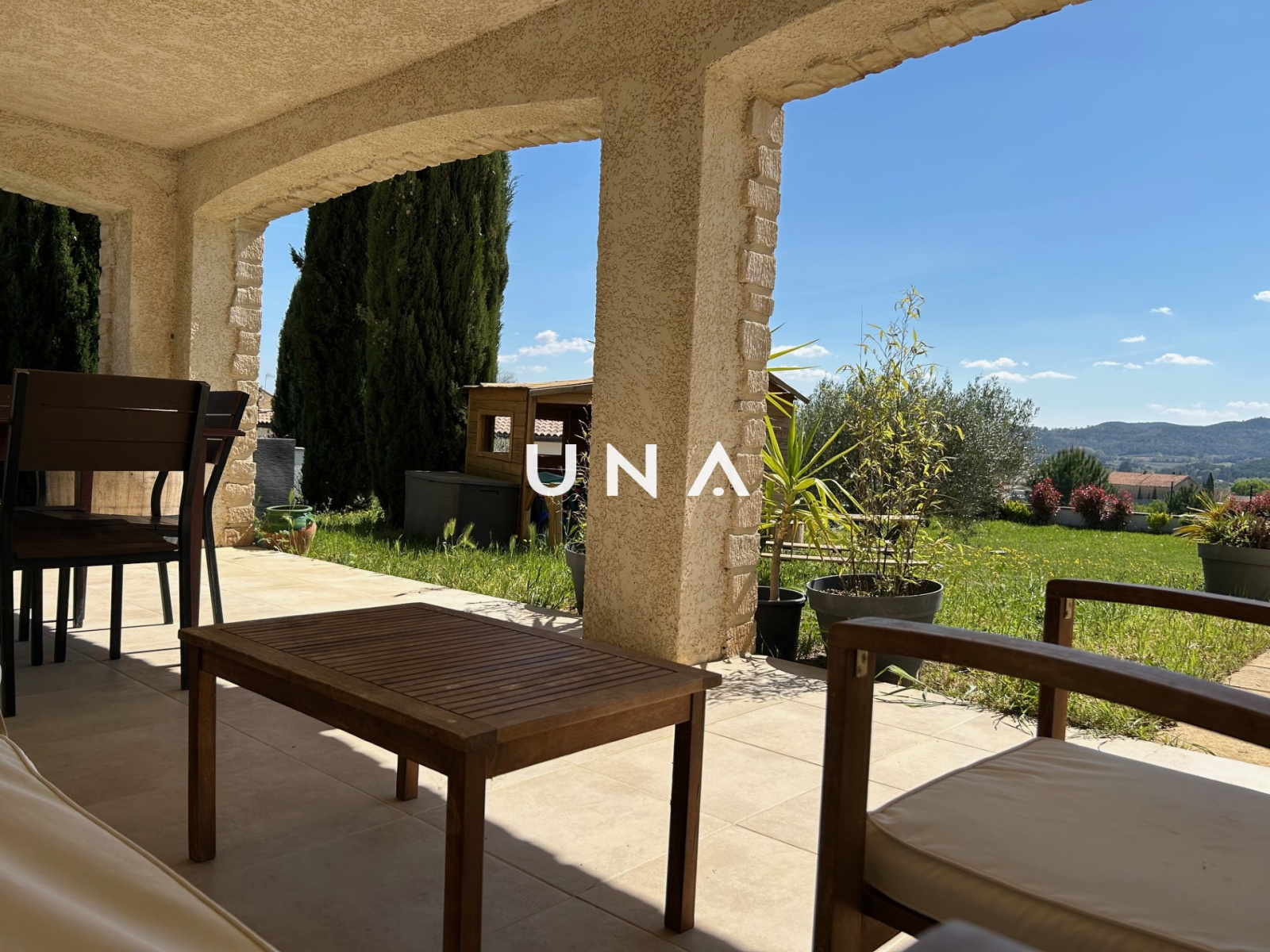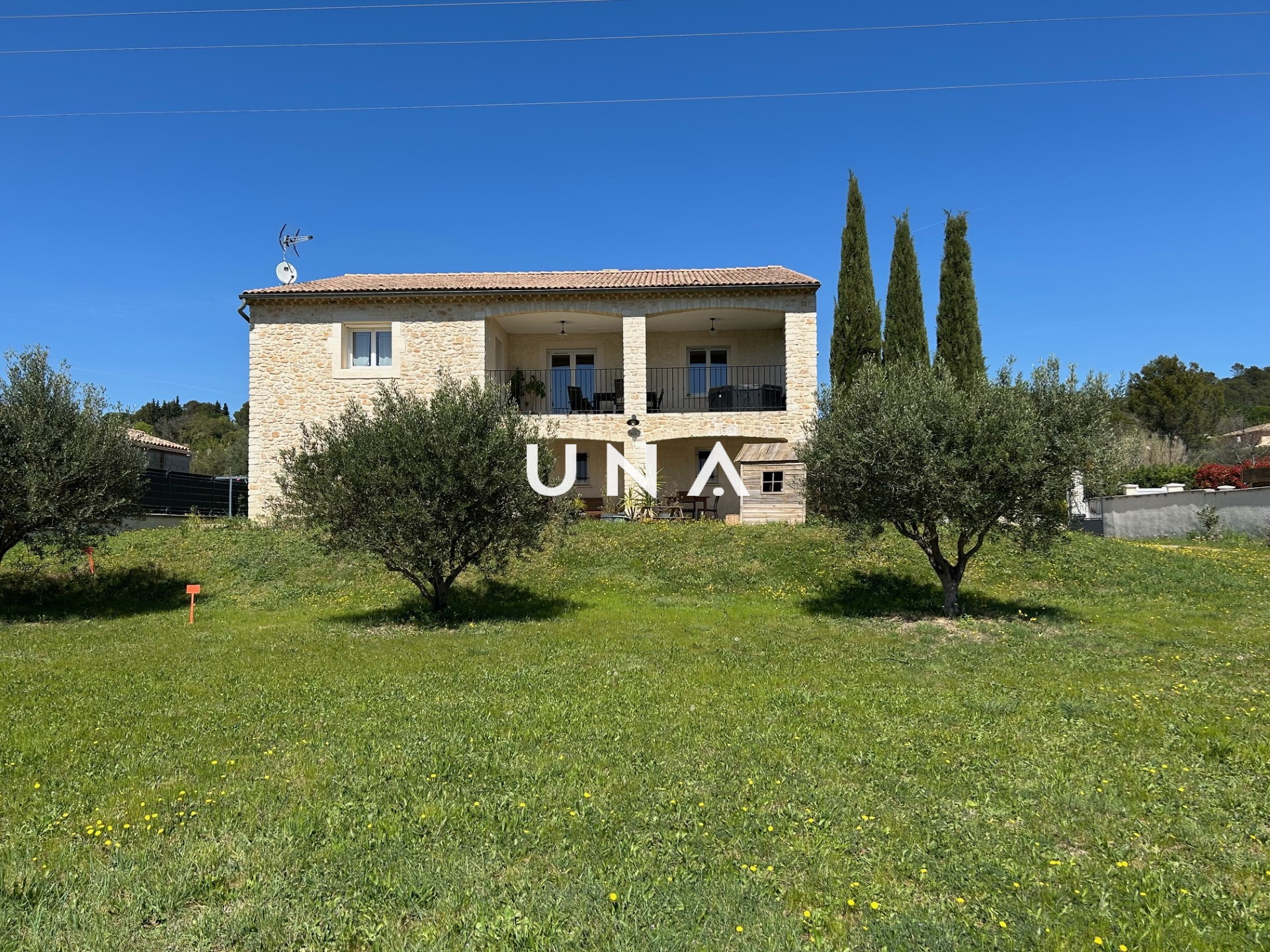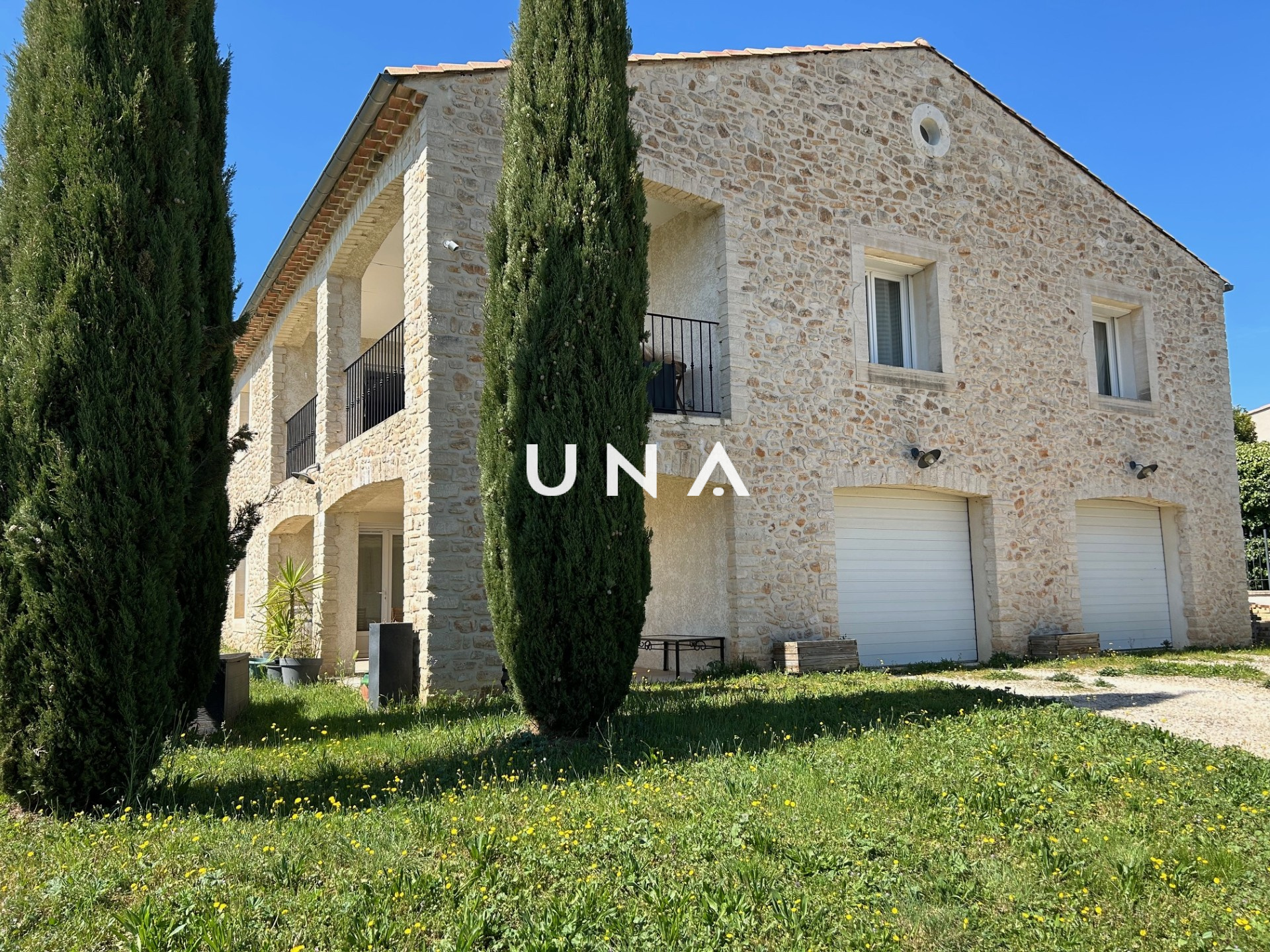 Saint-Gervais (30200)Je suis heureuse de vous présenter cette belle et confortable maison au cœur de la vallée de la Cèze, dans un charmant village avec commodités. Cette maison a été construite en 2013 sur environ 700 m² de jardin clos, constructible, arboré et offrant une superbe vue au sud. Au rez-de-chaussée elle se compose d'une terrasse couverte, de deux grands garages, d'un atelier, d'une chambre avec placard et d'une buanderie. Au premier étage, un espace de vie très chaleureux et lumineux avec cheminée donnant sur une grande terrasse couverte, nous permettant de profiter d'une vue magnifique, une cuisine aménagée et équipée avec porte fenêtre à galandage, deux chambres avec placard, une chambre avec dressing, un wc et une salle de bains . Tout confort, elle offre un chauffage par pompe à chaleur au sol chauffant et rafraîchissant, une aspiration centralisée, une vmc, des menuiseries en PVC. Le terrain constructible peut être détaché ou recevoir la construction d'une jolie piscine. Un grand pool-housse complète l'ensemble. A visiter sans tarder. Une offre sélectionnée par votre agence UNA IMMOBILIER. au prix de 350 000 euros. Honoraires de l'agence à la charge du vendeur. Contactez Julie au 0625805368. RCS : 43211572300020 .Réf : 2479. Les informations sur les risques auxquels ce bien est exposé sont disponibles sur le site Géorisques.fr.