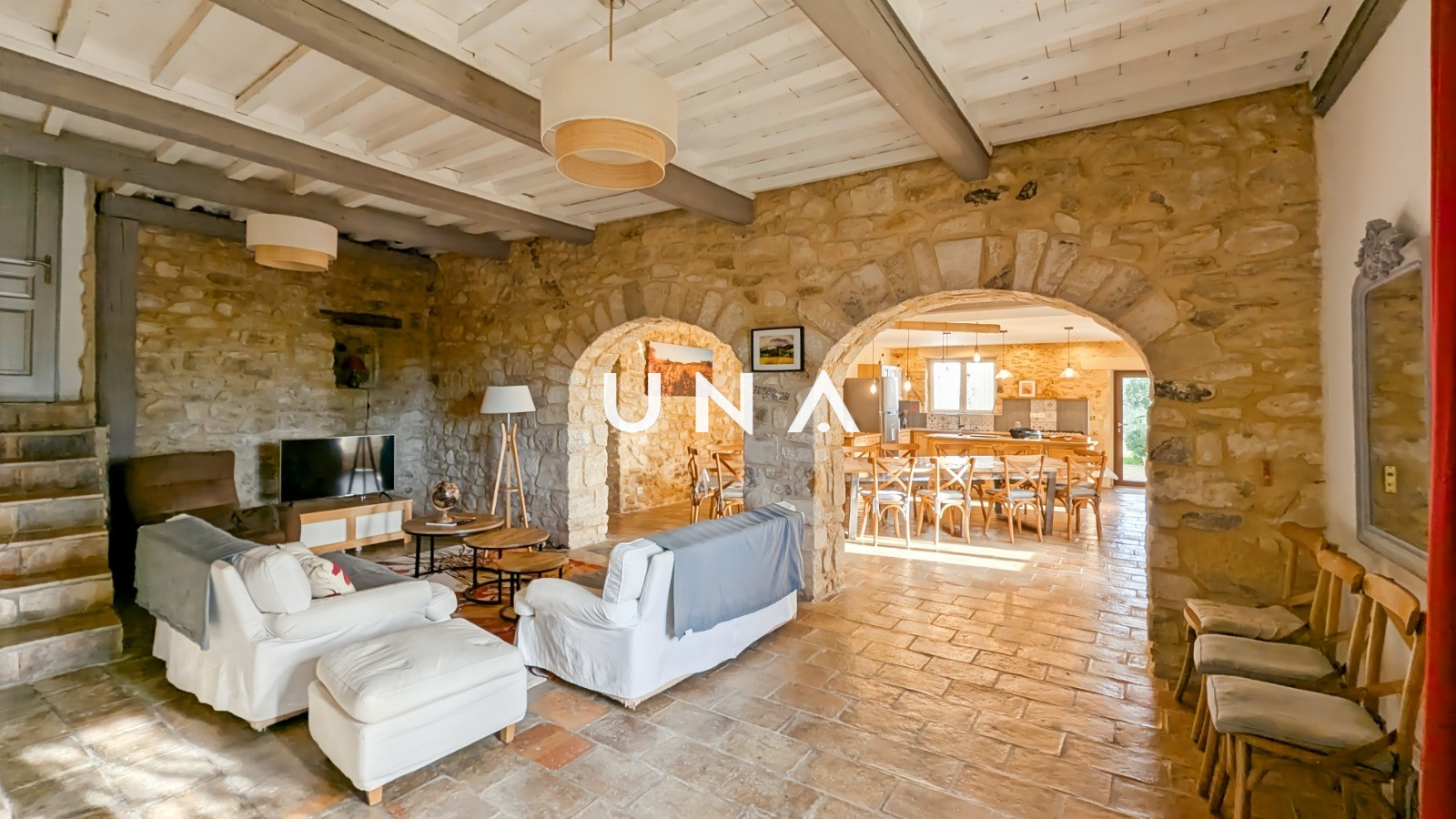 Saint-Michel-d'Euzet (30200)Cette propriété d’exception se compose de deux mas entièrement rénovés avec un niveau de finition rare, offrant près de 490 m² habitables au cœur d’un environnement naturel préservé. Une adresse où le calme, l’élégance et le confort se conjuguent avec une harmonie parfaite. Le parc paysagé d’environ 5 000 m², planté d’essences méditerranéennes et de nombreux fruitiers, accueille une magnifique piscine 15 × 6 m, son pool house, ainsi que de vastes terrasses, tantôt ombragées, tantôt ensoleillées, permettant de profiter pleinement de chaque moment de la journée. Forage, arrosage automatique et éclairages extérieurs complètent ce cadre soigné dans les moindres détails. Le mas principal, d’environ 375 m² dont 76 m² dédiés à un gîte intégré, se distingue par une atmosphère chaleureuse et raffinée. La superbe pièce de vie de 72 m² s’ouvre largement sur l’extérieur, tandis que les sept suites, toutes équipées de leur salle d’eau privative, offrent un confort absolu. Les chambres bénéficient de la climatisation réversible, de volumes généreux et d’une circulation pensée pour un bien-être optimal. Le second mas, s’inscrit dans la continuité du premier : une élégante pièce de vie de 60 m², trois suites dont une parentale de plus de 40 m², terrasses, lumière naturelle et prestations haut de gamme. Un véritable havre indépendant, idéal pour recevoir famille et amis dans des conditions exceptionnelles. Deux granges ainsi qu’un mazet offrent en outre un potentiel d’aménagement précieux pour agrandir encore le domaine ou imaginer de nouveaux espaces de vie, de loisir ou d’accueil haut de gamme. Idéalement située, la propriété se trouve à proximité immédiate des lieux les plus prisés : Roque-sur-Cèze et les cascades du Sautadet, Goudargues, Uzès, Lussan, ainsi que de nombreux villages classés. Le tout avec un accès rapide aux principaux axes de communication. Une propriété de caractère, rare sur le marché, où authenticité, luxe et intimité se rencontrent pour offrir un art de vivre incomparable. Honoraires d'agence à la charge du vendeur. Information d'affichage énergétique sur ce bien : classe ENERGIE B indice 68 et classe CLIMAT B indice 7. Les informations sur les risques auxquels ce bien est exposé, y compris l'obligation légale de débroussaillement, sont disponibles sur le site Géorisques : http://www.georisques.gouv.fr..Une propriété sélectionnée par votre agence UNA IMMOBILIER. Au prix de 1 495 000 euros. Honoraires de l'agence à la charge du vendeur. Contactez Julie au 0625805368. RCS : 43211572300020 .Réf : 2506.