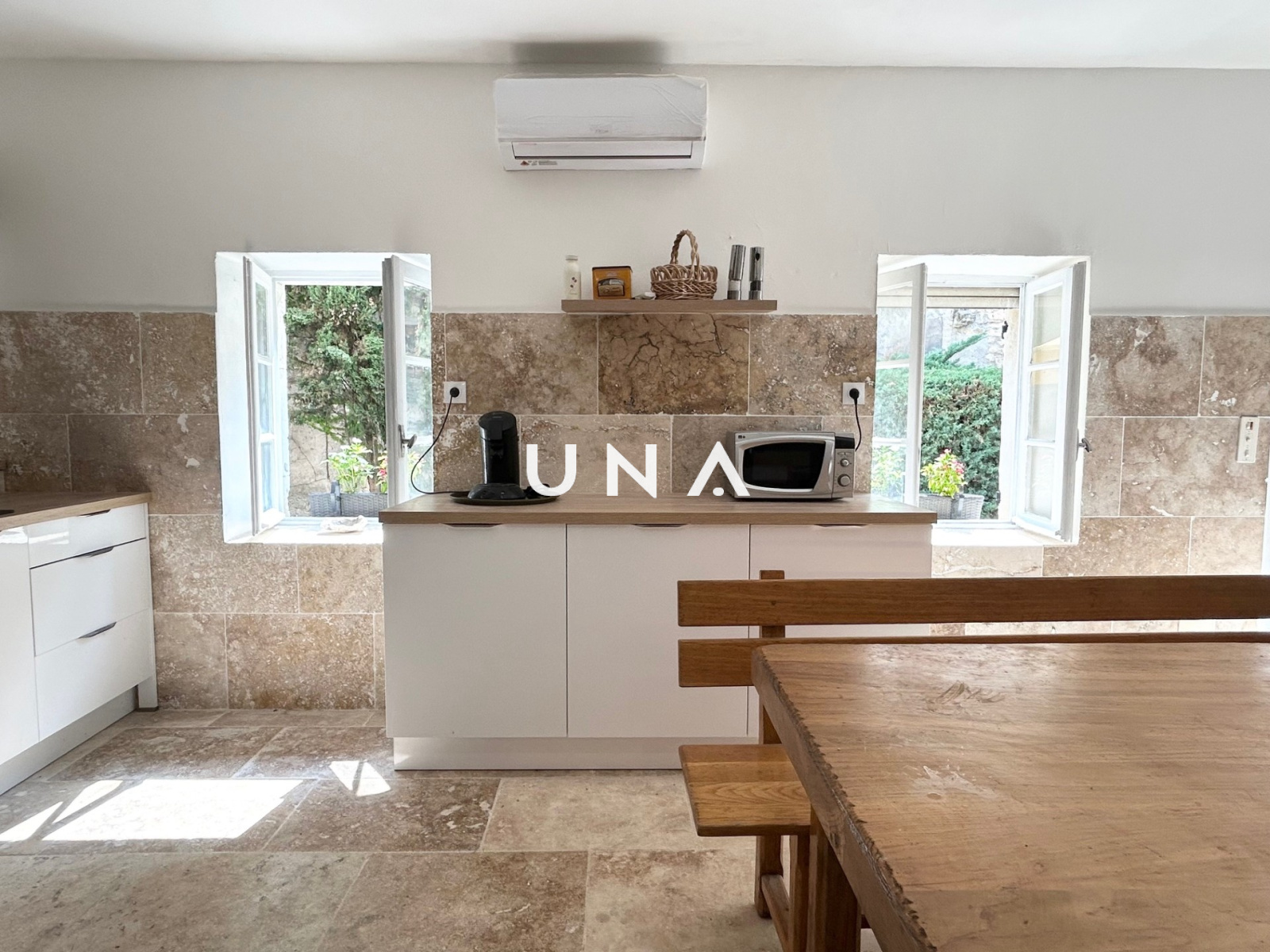 Saint-Chaptes (30190)Je suis heureuse de vous présenter cette charmante maison de village au cœur de Saint Chaptes, bénéficiant de toutes les commodités à pied. Cette maison, intimiste, secrète à fort potentiel offre près de 200 m² de surface habitable et un ravissant jardin intérieur arboré de plus de 400 m². Rénovée avec goût avec des sols en travertins, une ravissante cuisine lumineuse et fonctionnelle il ne manque plus qu'un superbe bassin romain..Une touche de modernité dans une belle et authentique maison en pierre. L'espace de vie au rez-de-chaussée d'une surface de 62 m² communique avec le jardin et nous offre une articulation très agréable. L'espace nuit aux étages est composé de cinq grandes chambres et des sanitaires. en complément une superbe dépendance de 100 m², atypique et transformable. Puits. climatisation réversible. A visiter sans tarder. Une propriété sélectionnée par votre agence UNA IMMOBILIER.Honoraires de l'agence à la charge du vendeur. Contactez Julie au 0625805368. RCS : 43211572300020 .Réf : 2442. Les informations sur les risques auxquels ce bien est exposé sont disponibles sur le site Géorisques.fr.