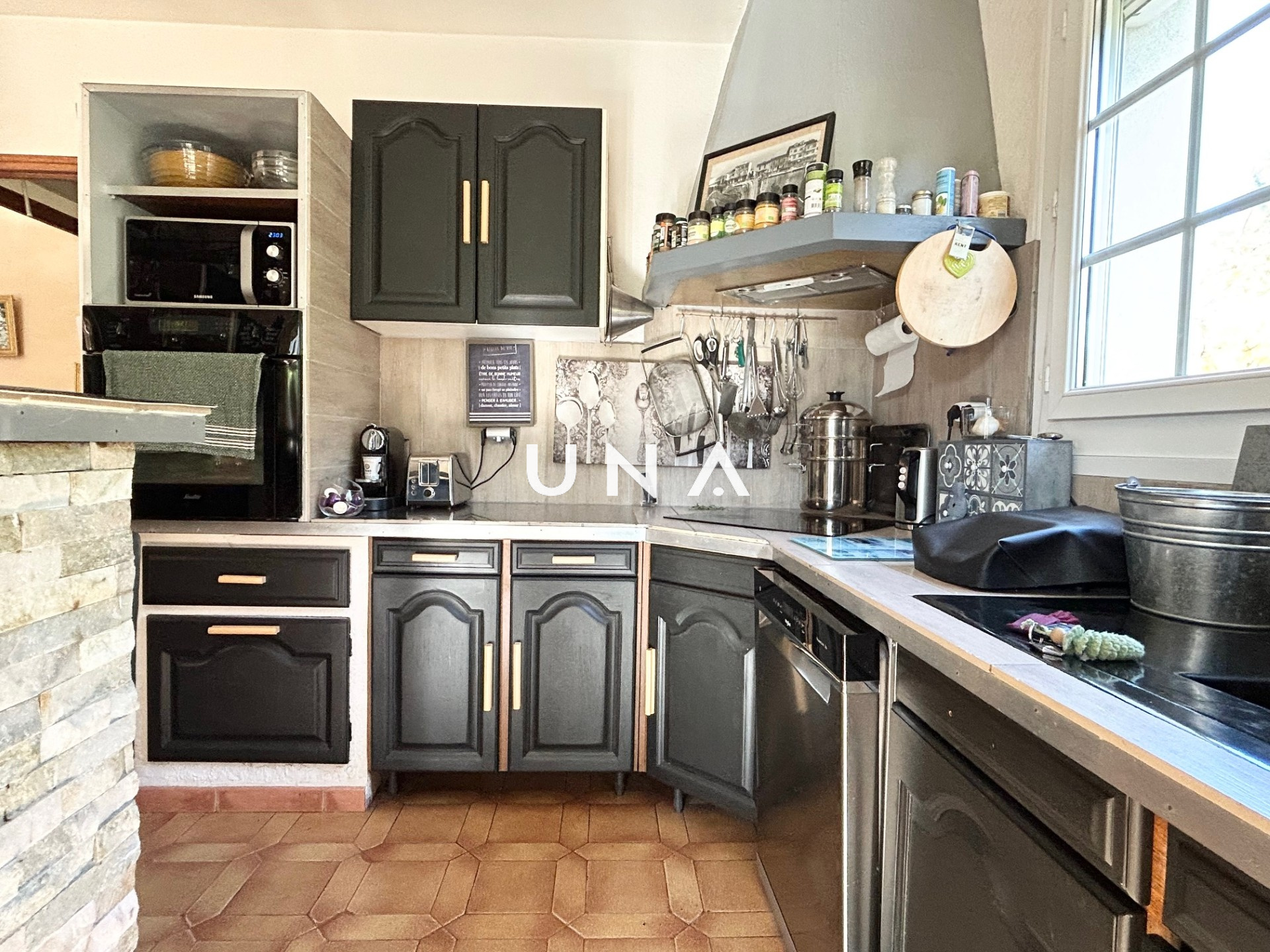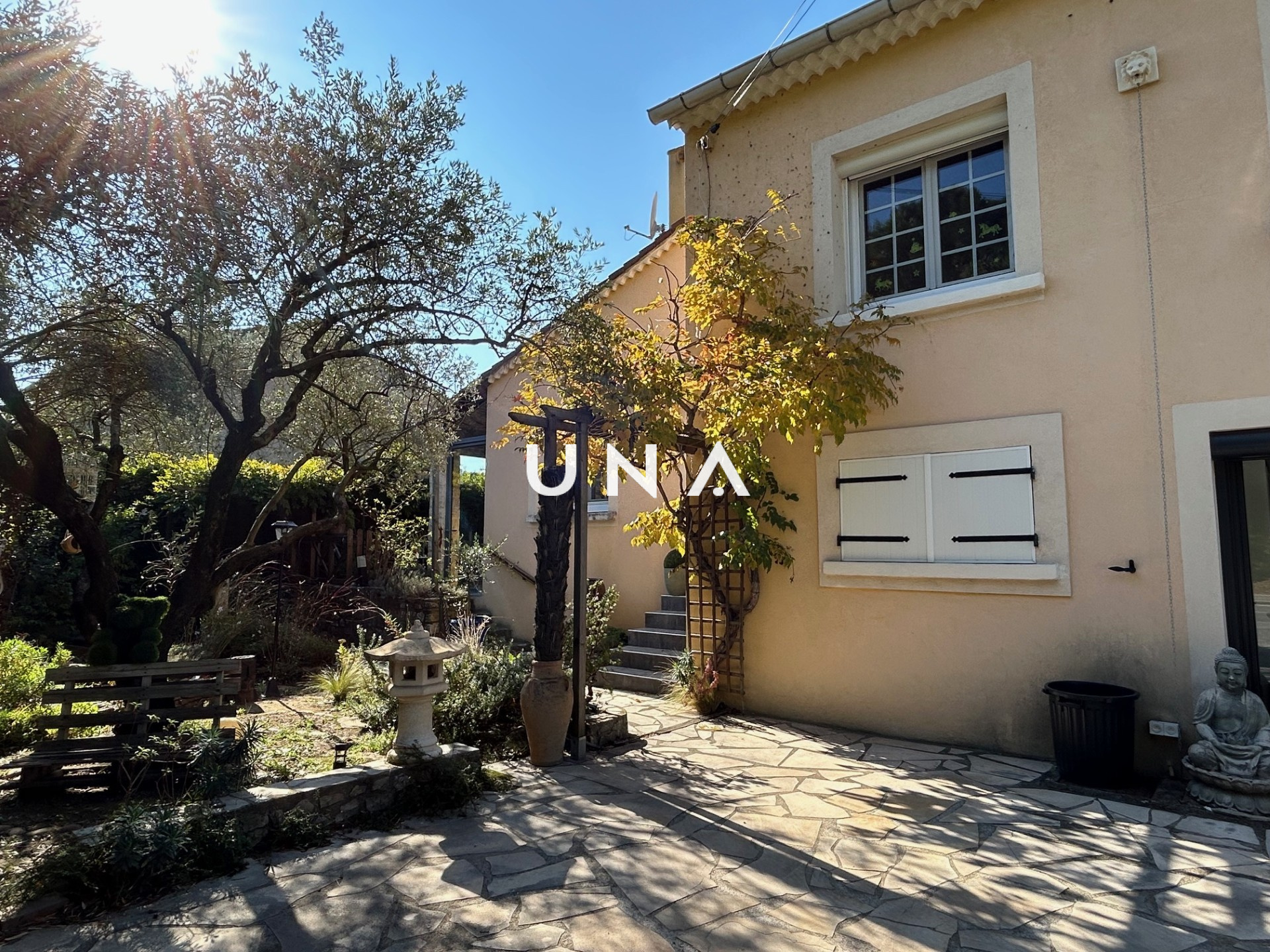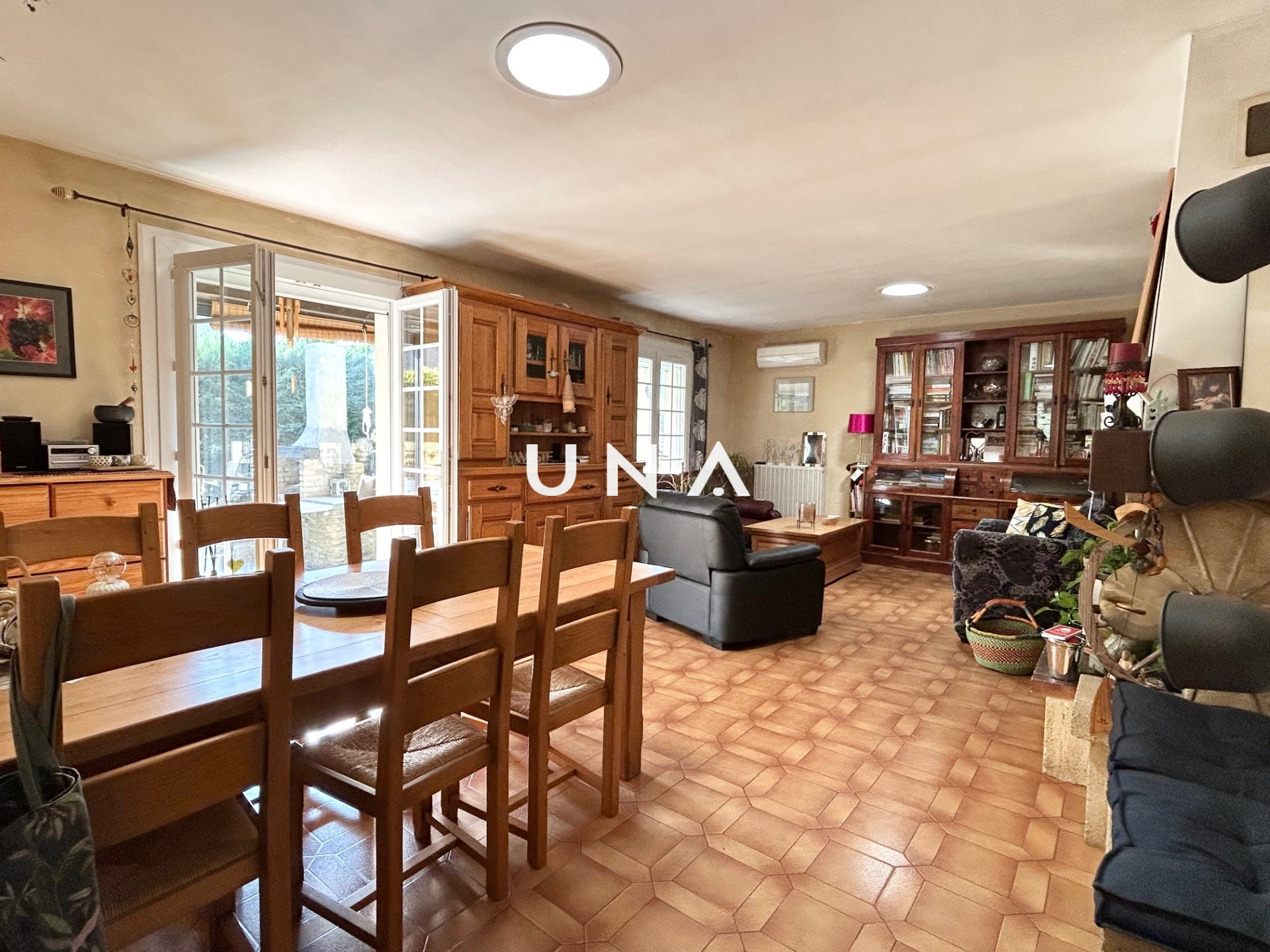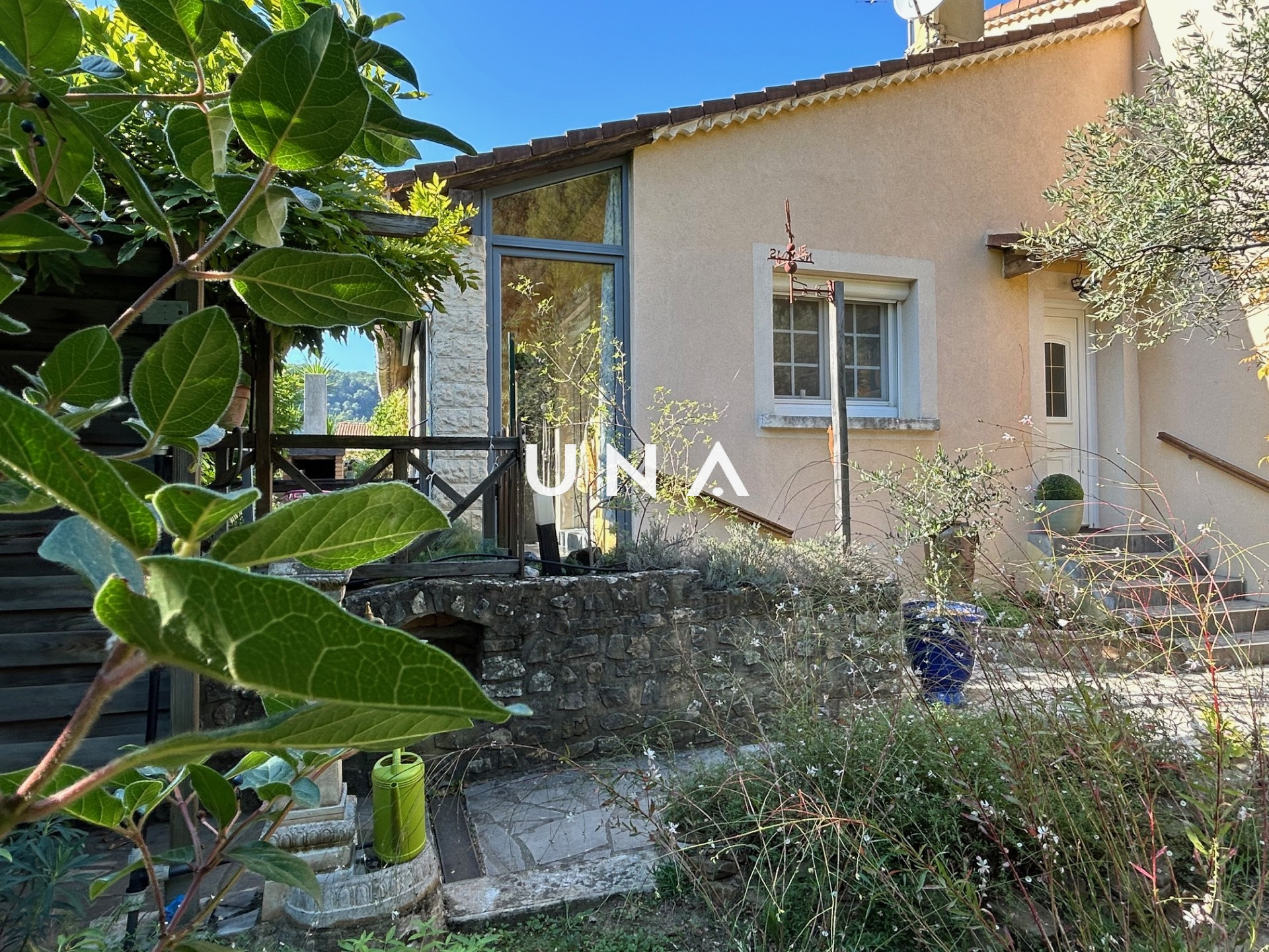 Bagnols-sur-Cèze (30200)Je suis heureuse de vous présenter sur la commune de Bagnols sur Cèze cette grande maison familiale et confortable construite en 1979 sur 589 m² de jardin clos. Elle offre 163 m² de surface habitable, 5 chambres et s'articule avec des demi-niveaux. Au niveau du jardin, un cabinet-bureau ou grande chambre de 17 m², une réserve, une salle d'eau avec wc, un cellier, une chambre et des ateliers. Au premier demi niveau, l'espace de vie se compose d'un hall d'entrée, d'un salon de 35 m² avec cheminée donnant sur une véranda de 10 m² et d'une cuisine aménagée de 11 m². Au niveau de l'espace nuit, un hall avec placard, 3 chambres 10, 13 et 13 m², une grande terrasse-véranda de 20 m², un wc et une salle de bains. Le jardin joliment aménagé et arboré offre de nombreux espaces détente.Tout confort, cette maison offre le chauffage central au gaz de ville, du double vitrage, des climatisations réversibles et le confort du bois. A visiter sans tarder! Une offre sélectionnée par votre agence UNA IMMOBILIER. au prix de 323 000 euros. Honoraires de l'agence à la charge du vendeur. Contactez Julie au 0625805368. RCS : 43211572300020 .Réf : 2500 Les informations sur les risques auxquels ce bien est exposé sont disponibles sur le site Géorisques.fr.